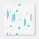 This Retro Turquoise Diamonds and Starbursts Square Magnet pattern is a new take on a vintage style. It features kitschy, grey starbursts on turquoise polka dots, surrounding geometric, turquoise and grey diamond shapes. Customize the background color on this mid century modern product if you're feeling daring, or leave it white if subdued is more your style. You're sure to enjoy our homage to the 1950s. Buy this today and be the coolest cat on your block.