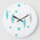 This Retro Turquoise Diamonds and Starbursts Wall Clock (large print) pattern is a new take on a vintage style. It features kitschy, grey starbursts on turquoise polka dots, surrounding geometric, turquoise and grey diamond shapes. Customize the background color on this mid century modern product if you're feeling daring, or leave it white if subdued is more your style. You're sure to enjoy our homage to the 1950s. Buy this today and be the coolest cat on your block.