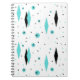This Retro Turquoise Diamonds and Starbursts Spiral Notebook is a new take on a vintage style. It features kitschy, black starbursts on turquoise polka dots, surrounding geometric, turquoise and black diamond shapes. Customize the background color on this mid century modern product if you're feeling daring, or leave it white if subdued is more your style. You're sure to enjoy our homage to the 1950s. Buy this today and be the coolest cat on your block.