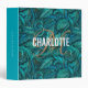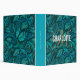 Retro 3 ring binder with a gold monogram and a white name on a turquoise tooled faux leather background. Personalize with initial and name on the front and your text on the spine.