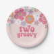 Retro Two Groovy Pink Floral Paper Plates