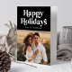 Retro Typography Black Happy Holidays Photo Holiday Card