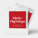 Festive holiday hot chocolate packets featuring "Merry Christmas" displayed in white, retro lettering with a red background (or color of your choice). Personalize the hot chocolate drink mixes with your name or custom text. The personalized hot chocolate packets are perfect to use as stocking stuffers and holiday party favors.