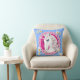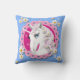 Retro Unicorns and Daisies Pattern on Blue Throw Pillow