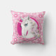 Retro Unicorns and Daisies Pattern on Pink Throw Pillow