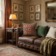 This is a retro unique throw pillow with indo oriental style with geometric abstract patterns.