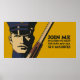 Summary: Poster showing a soldier's face, framed by uniform collar, hat, and rifle.
