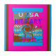 Introducing the "Retro USA Stronger Together Abstract Art Print," a captivating artwork that melds a retro aesthetic with powerful themes of unity and political significance. This piece features bold text arranged vertically, set against an abstract background filled with dynamic colors and shapes. The design conveys a message of unity and potential political significance with a distinct retro aesthetic, framed by magenta, blue, and brown borders