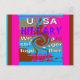 Introducing the "Retro USA Stronger Together Abstract Art Print," a captivating artwork that melds a retro aesthetic with powerful themes of unity and political significance. This piece features bold text arranged vertically, set against an abstract background filled with dynamic colors and shapes. The design conveys a message of unity and potential political significance with a distinct retro aesthetic, framed by magenta, blue, and brown borders