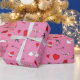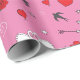 Retro Valentines Day Pattern on Pink Wrapping Paper