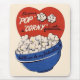 Vintage illustration cute Valentine's Day love and romance retro design featuring a bowl of popcorn with two kernels of popcorn smiling at each other.