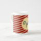Retro Varsity Crimson Red & Cream Stripes Monogram Bone China Mug