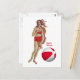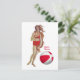 Botticelli's Venus in more daring two piece red polka dot retro swimsuit with matching beach ball