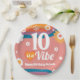 Cute girly retro 10 is groovy birthday invitations. Popular retro rainbow, stars, flowers, and 60s style font. Available as a digital download printable.