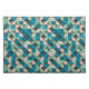 This mid-century modern pattern features turquoise and green geometric shapes.