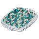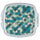 This mid-century modern pattern features turquoise and green geometric shapes.