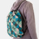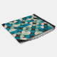 This mid-century modern pattern features turquoise and green geometric shapes.