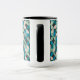 This mid-century modern pattern features turquoise and green geometric shapes.