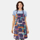 Retro Vintage Bold Geometric Purple Blue Cooking Apron