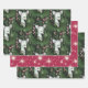 The overall aesthetic of this wrapping paper is delightfully kitschy, capturing the essence of a vintage Christmas with a modern and playful twist. The combination of dark green, white deer, and pink ornaments creates a visually striking and unique composition that is sure to stand out under the Christmas tree. It's a perfect choice for those who appreciate a touch of retro fun and lighthearted charm during the holiday season.