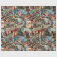 This wrapping paper is a festive collage featuring vintage Christmas and holiday-themed illustrations and cards. The overall color palette includes rich reds, greens, blues, and golds, enhancing the nostalgic and festive feel of the collage.