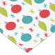 Add a festive and vintage style touch to your dining room table this holiday season with this patterned tablecloth. It features simple illustrations of retro Christmas ornaments in bright red, turquoise blue and lime green along with coordinating asterisk or star shapes against a white background. The graphics have a lightly distressed style for a vintage look.