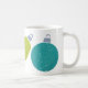 This festive mug is perfect for sipping some hot cocoa by the fire as you await Santa's arrival. Retro style illustrations of Christmas tree ornaments in bright red, lime green and turquoise blue decorate this mug. The graphics wrap around the mug and have a lightly distressed style for a vintage look. This mug is also ready to be personalized with a name.