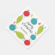 Jingle and mingle in style with paper napkins that are ready to be personalized with your own headline and name or other custom text. Your text is surrounded by illustrations of tree ornaments in bright red, turquoise blue and lime green with a fun vintage style.
