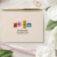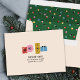 Created to coordinate with the "Vintage Christmas Tree" holiday card collection, this whimsical envelope features Christmas presents in a variety of colors and patterns. Beneath the fun illustration is space for the card recipient's name and address. There is space on the back flap for the customer's address. The inside of the envelope features a coordinating pattern that resembles a Christmas tree decorated with colorful dot "ornaments"... Be sure to check out the coordinating return address label to complete the look!