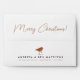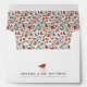 This beautifully crafted vintage-inspired envelope is perfect for spreading holiday cheer. It features a charming watercolor red robin pattern inside, elegantly accented by vibrant Christmas Star Poinsettia leaves on a clean white background. The exterior offers a minimalist, classic design with customizable black and gold-brown text, allowing you to personalize your holiday message or name and address. A delightful little robin adds a festive touch, making it the perfect choice for sending warm and thoughtful Christmas and winter holiday cards. Ideal for creating memorable mail moments during the holiday season.