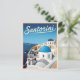 Retro Vintage Travel Santorini Blue Seaside Postcard