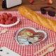 Retro vintage Valentine kids party paper plate