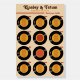 Groovy vinyl record seating chart for up to 10 tables with up to 10 guests per table. Perfect for your retro 70s vinyl record music theme wedding. Your names top the chart with your wedding date and the words "find your table" below. Seating lists for each guest table are featured on individual vinyl record images with both numbers and text version of the table number. In our groovy browns color scheme in cream, orange, reds, and browns, it is a very 1970s vibe. It is clear and easy to read to keep the flow of your party moving.