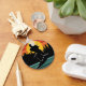 Retro wakeboard water skiing sports for surfing and ski enthusiasts. Silhouette style with orange sunset over pine trees and lake. Customize text to your own quota. Transferable to other products.
