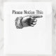 This retro sticker contains the drawing of a hand with pointed finger. It shows to the right and says "please notice this". It can be used to indicate danger or something of importance. The design is classic hand-drawn (woodcut) and comes from an old book. Using this item will convey whatever notice you want your customer or visitor to take, but in a classy and vintage style. Ideal for the antique shop of any area where you don't want to disturb the timeless ambience with a modern sign.