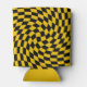 Retro Warped Black Yellow Checks Checkered Can Cooler