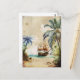 Retro Watercolor Pirate Ship Palm Trees Old Paper Postcard