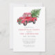 Invite your guests to a nostalgic holiday celebration with this charming Christmas party invitation featuring a watercolor illustration of a vintage red truck carrying a Christmas tree. The retro design evokes memories of classic holiday traditions, creating a warm and inviting atmosphere for your gathering. Personalize with your event details to make it uniquely yours. This delightful and heartwarming invitation is perfect for any holiday celebration, adding a touch of retro charm and festive spirit to your Christmas festivities.