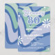 Retro Wave Daisies Groovy 80th Blue Birthday Invitation