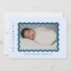 Announce the birth of your little boy with this trendy announcement card featuring your favorite photo of your little one in a navy blue wavy scallop frame on a baby blue background and navy text. Add a personal message to the reverse.
