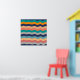 A retro-inspired design featuring irregular wavy lines in navy blue, turquoise and orange.