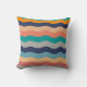 Retro Wavy Lines - Blue Turquoise Orange Throw Pillow