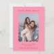Retro Wavy Photo & QR Code Pink & Red Wedding Save The Date