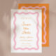 Retro Wavy Pink Orange Wave Wedding Invitations