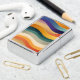 A stylish retro-inspired abstract design featuring flowing wavy stripes in warm and cool tones. Perfect for adding a vintage yet modern aesthetic to your products, this pattern brings a soft, artistic vibe with textured grain details. Ideal for home decor, stationery, and accessories.