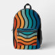 Retro Wavy Stripes Pattern with Monogram Initials Printed Backpack
