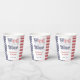 All-American "Wed White And Blue" paper cups, incorporating the Stars and Stripes. This retro lettering design would work especially well for an outdoors event eg grill or cookout, whether a couples wedding shower or a backyard wedding.