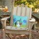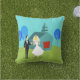 This Retro Wedding Couple Outdoor Pillow will have you hearing wedding bells. The 1960's style, minimalist art design features a bride and groom on their wedding day. The happy couple looks good enough to be standing atop a wedding cake. But they aren't. They're standing on lush, green grass. The debonair Mr. is wearing a classic, black tuxedo with black bow tie. Down, ladies! He's taken! He is holding the hand of his beautiful Mrs., who looks positively radiant in her tea length, white gown with form fitting waist and flared skirt. She truly looks like a princess with her tiara and gauzy, white wedding veil resting on her pretty blonde head. Beside them, a path in the grass leads to the world's most charming chapel. The quaint, teal and turquoise church is the perfect setting for saying, "I do!" Yes, here is the church. Here is the steeple. We can only assume that, behind those bright red, double doors is a roomful of people just waiting to share in this couple's happiness. The picturesque setting also includes four, stylistic, cartoon trees in shades of blue. It's a beautiful day for a wedding, as we can see from the flawless aqua sky. The only thing missing from this mid century modern design is the rice, and we can assume that will be forthcoming. The opposite side of this pillow is solid aqua and can be personalized.