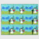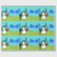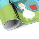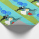 This Retro Wedding Couple Wrapping Paper will have you hearing wedding bells. The 1960's style, minimalist art design features a bride and groom on their wedding day. The happy couple looks good enough to be standing atop a wedding cake. But they aren't. They're standing on lush, green grass. The debonaire Mr. is wearing a classic, black tuxedo with black bow tie. Down, ladies! He's taken! He is holding the hand of his beautiful Mrs., who looks positively radiant in her tea length, white gown with form fitting waist and flared skirt. She truly looks like a princess with her tiara and gauzy, white wedding veil resting on her pretty blonde head. Beside them, a path in the grass leads to the world's most charming chapel. The quaint, teal and turquoise church is the perfect setting for saying, "I do!" Yes, here is the church. Here is the steeple. We can only assume that, behind those bright red, double doors is a roomful of people just waiting to share in this couple's happiness. The picturesque setting also includes four, stylistic, cartoon trees in shades of blue. It's a beautiful day for a wedding, as we can see from the flawless aqua sky. The only thing missing from this mid century modern design is the rice, and we can assume that will be forthcoming. This design is perfect for congratulating your favorite newlyweds.