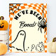 Retro We've Been Booed You've Been Booed Game Sign - A fun, retro "We've Been Booed" sign with quirky hand drawn scribble characters of a spooky ghost, spiderweb, jack o lantern carved pumpkin, lollipop candy, and spider on a disco ball. Perfect for "You've Been Booed" Neighborhood Game to play with neighbors and friends and keep the fun going this spooky Halloween season. All text is editable.